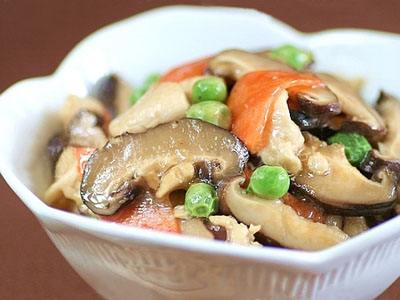 This dish is Cantonese flavour. You can also use chicken broth. Just bring it to a boil, add a bit of rice wine for flavour, and let it simmer for about 5mintues. Another variation is to boil the mushrooms in the chicken broth before stir-frying.